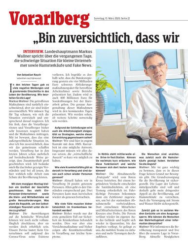 Interview. Landeshauptmann Markus Wallner spricht über die vergangenen Tage, die schwierige Situation für kleine Unternehmer sowie Hamsterkäufe und Fake News.