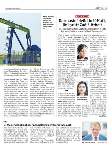 Ex-Familienministerin Sophie Karmasin bleibt in Haft. Uni prüft Plagiatsvorwurf bei Zadić-Dissertation.