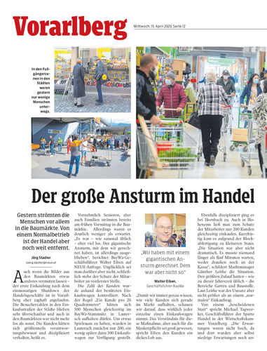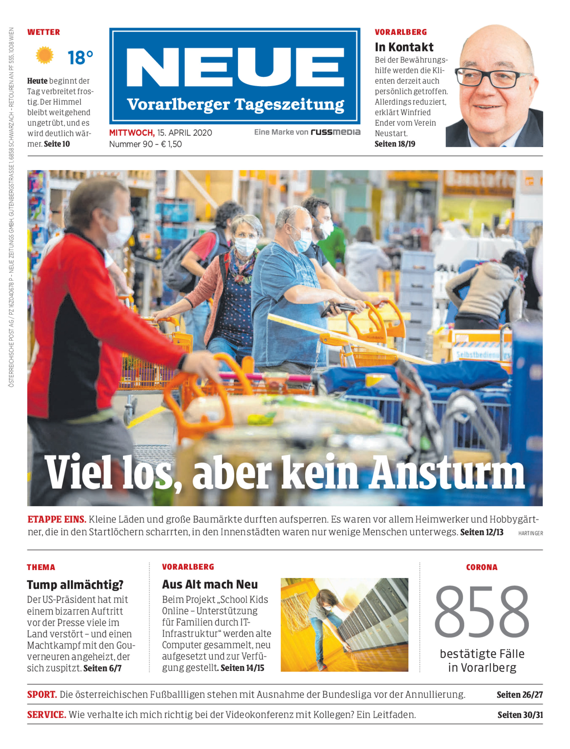 Etappe Eins. Kleine Läden und große Baumärkte durften aufsperren. Es waren vor allem Heimwerker und Hobbygärtner, die in den Startlöchern scharrten, in den Innenstädten waren nur wenige Menschen unterwegs. Seiten 12/13 hartinger