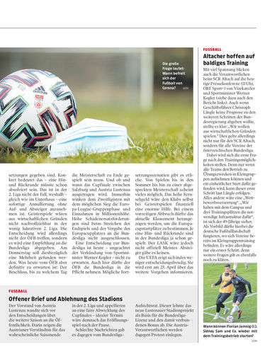 Heute wird Sportminister Werner Kogler Auskunft darüber geben, was wann wieder erlaubt sein wird. Im Fußball entscheidet sich, wie die Ligen gewertet werden. Von Michael Jungwirth, Michael Lorber, Georg Michl und Alex Tagger