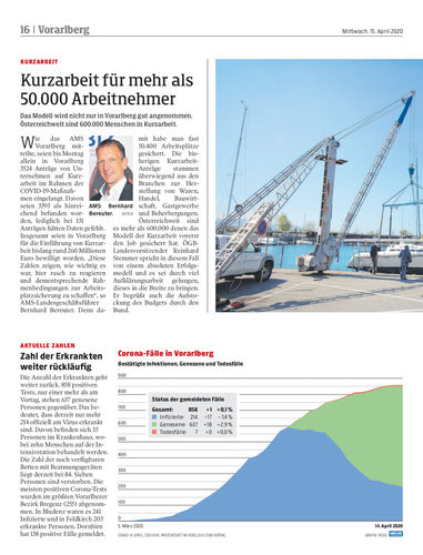 Das Modell wird nicht nur in Vorarlberg gut angenommen. Österreichweit sind 600.000 Menschen in Kurzarbeit.