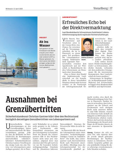 Laut Bundesbäuerin Schwarzmann funktioniert Lebensmittelversorgung dank regionaler Partnerschaften gut.