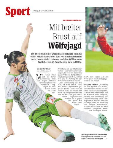 Im dritten Spiel der Qualifikationsrunde kommt es im Reichshofstadion zum Aufeinandertreffen zwischen Austria Lustenau und den Wölfen vom Wolfsberger AC. Spielbeginn ist um 17 Uhr.