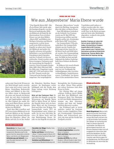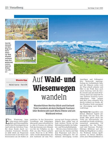 Wanderführer Hertha Glück und Gerhard Vylet wandern ab dem Dorfpark Frastanz über Bodenwald nach Maria Ebene und am Waldrand retour.