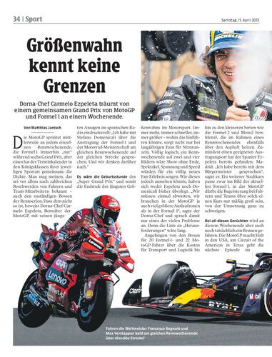 Dorna-Chef Carmelo Ezpeleta träumt von einem gemeinsamen Grand Prix von MotoGP und Formel 1 an einem Wochenende.