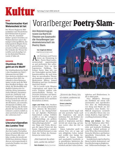 Am Donnerstag gewann Lia Hartl im Theater am Saumarkt die Vorarlberger Landesmeisterschaft im Poetry Slam.