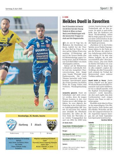 Der FC Dornbirn ist heute (14.30 Uhr) bei den Young Violets in Wien zu Gast. Nach zwei Niederlagen will die Janeschitz-Truppe zurück auf die Siegerstraße.