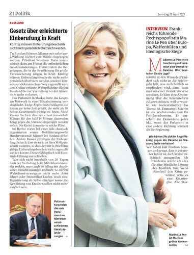 Frankreichs führende Rechtspopulistin Marine Le Pen über Europa, Waffenhilfen und ideologische Siege.