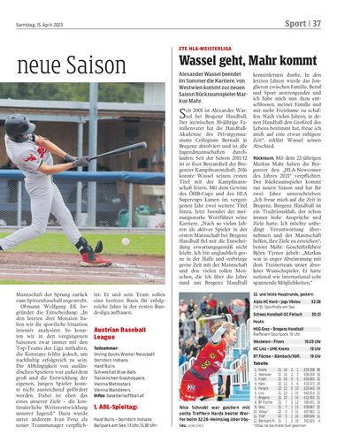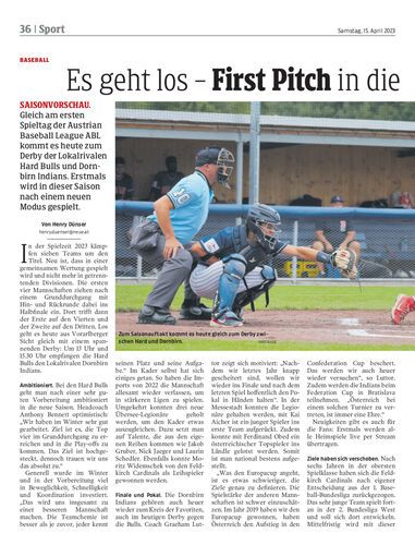Saisonvorschau. Gleich am ersten Spieltag der Austrian Baseball League ABL kommt es heute zum Derby der Lokalrivalen Hard Bulls und Dornbirn Indians. Erstmals wird in dieser Saison nach einem neuen Modus gespielt.
