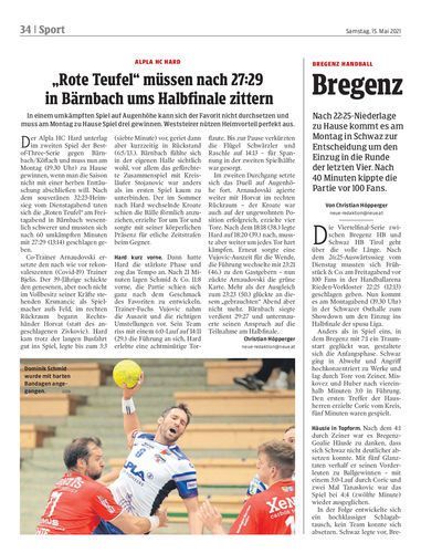 Nach 22:25-Niederlage zu Hause kommt es am Montag in Schwaz zur Entscheidung um den Einzug in die Runde der letzten Vier. Nach 40 Minuten kippte die Partie vor 100 Fans.