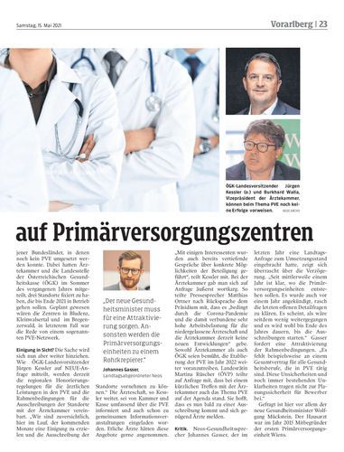 Aus den drei bis 2021 geplanten Primärversorgungseinheiten in Vorarlberg wird vorerst nichts. Derzeit stehen noch nicht einmal die Rahmenbedingungen für die Ausschreibungen fest.