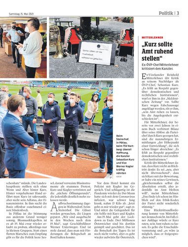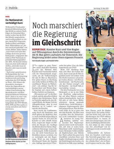 Reportage. Kanzler Kurz und Vize Kogler auf Öffnungstour durch die Oststeiermark: Ab 19. Mai geht’s aufwärts für Österreich. Die Regierung leidet unter ihren eigenen Fesseln. Von Claudia Gigler und Harald Hofer