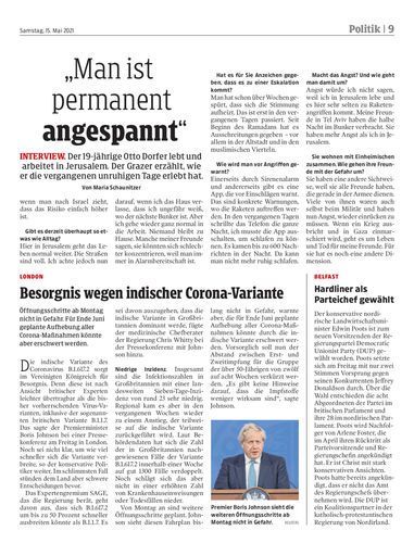 Der 19-jährige Otto Dorfer lebt und arbeitet in Jerusalem. Der Grazer erzählt, wie er die vergangenen unruhigen Tage erlebt hat. Von Maria Schaunitzer