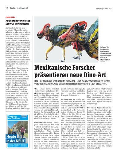 Der Entdeckung war bereits 2005 der Fund des Schwanzes des Tieres vorausgegangen, wie Wissenschaftler in Mexiko-Stadt erklärten.