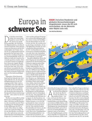ESSAY. Zwischen Pandemie und globalen Herausforderungen eingeklemmt, muss die EU sich entscheiden, ob sie Akteurin oder Objekt sein will. Von Herfried Münkler