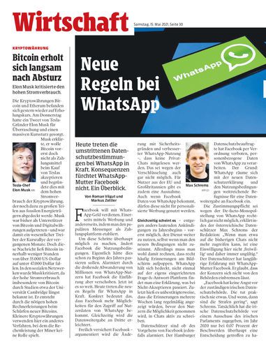 In der Kritik. Heute treten beim Messenger WhatsApp neue Nutzungsbedingungen in Kraft. Die Umstellung wurde am Jahresbeginn wegen starker Kritik verschoben. Verstummt ist diese jedoch nicht. Seiten 30/31 Reuters