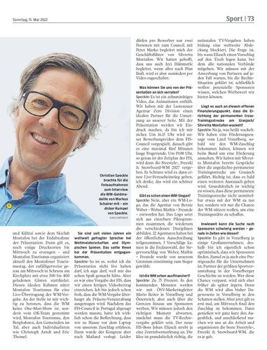 Interview. Am Mittwoch, dem 25. Mai, vergibt die FIS in Mailand die Freestyle-, Freeski & Snowboard-WM 2027 – mit dem Montafon als alleinigem Bewerber. Christian Speckle, Initiator und Mastermind der Kandidatur, mit einem exklusiven Ausblick.