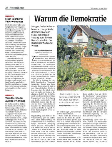 Morgen findet in Dornbirn die „Lange Nacht der Partizipation“ statt. Den Impulsvortrag zum Thema Demokratie hält der Historiker Wolfgang Weber.