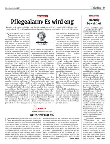 Dass auch die Jungen aufgeben, lässt die Alarmglocken schrillen. Es muss endlich mehr investiert werden in die Pflege: Hirnschmalz in die Rahmenbedingungen und echtes Geld in die Menschen.