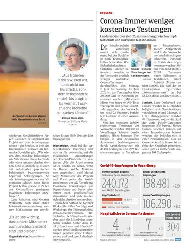 Landesrat Gantner sieht Zusammenhang zwischen Impffortschritt und sinkenden Testabnahmen.
