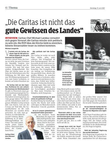 Caritas-Chef Michael Landau verwahrt sich gegen Vorwurf, die Caritas mische sich politisch zu sehr ein. Die ÖVP-Idee, der Kirche Geld zu streichen, könnte Steuerzahler teuer zu stehen kommen. Michael Jungwirth
