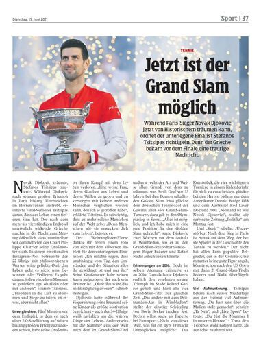 Während Paris-Sieger Novak Djokovic jetzt von Historischem träumen kann, ordnet der unterlegene Finalist Stefanos Tsitsipas richtig ein. Denn der Grieche bekam vor dem Finale eine traurige Nachricht.