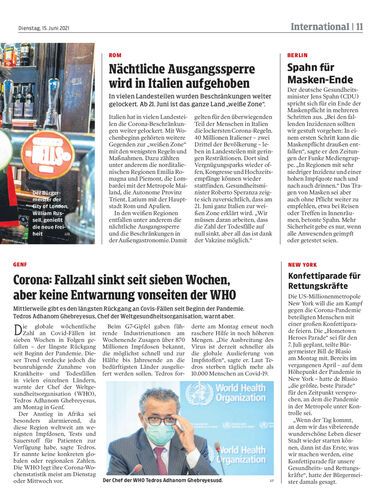Mittlerweile gibt es den längsten Rückgang an Covis-Fällen seit Beginn der Pandemie. Tedros Adhanom Ghebreyesus, Chef der Weltgesundheitsorganisation, warnt aber.