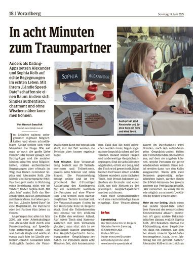 Anders als Dating-Apps setzen Alexander und Sophia Kolb auf echte Begegnungen im echten Leben. Mit ihrem „Ländle Speed-Date“ schaffen sie einen Raum, in dem sich Singles authentisch, charmant und ohne Wischen näher kommen können.
