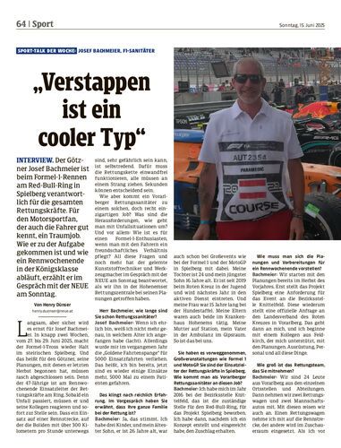 Interview. Der Götzner Josef Bachmeier ist beim Formel-1-Rennen am Red-Bull-Ring in Spielberg verantwortlich für die gesamten Rettungskräfte. Für den Motorsportfan, der auch die Fahrer gut kennt, ein Traumjob. Wie er zu der Aufgabe gekommen ist und wie ein Rennwochenende in der Königsklasse abläuft, erzählt er im Gespräch mit der NEUE am Sonntag.