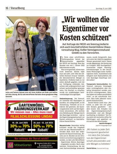 Auf Anfrage der NEUE am Sonntag äußerte sich auch Geschäftsführer Daniel Kühne (Hausverwaltung Mag. Kofler Vermögenstreuhand GmbH) zu den Vorwürfen.