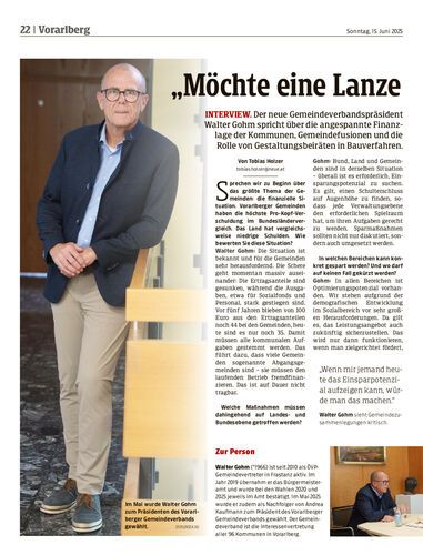Interview. Der neue Gemeindeverbandspräsident Walter Gohm spricht über die angespannte Finanzlage der Kommunen, Gemeindefusionen und die Rolle von Gestaltungsbeiräten in Bauverfahren.