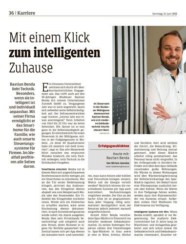 Bastian Benda liebt Technik. Besonders, wenn sie intelligent ist und individuell anpassbar. Mit seiner Firma ermöglicht er das Smarthome für die Familie, wie auch smarte Steuerungssysteme für Firmen. Im Idealfall profitieren alle Seiten davon.