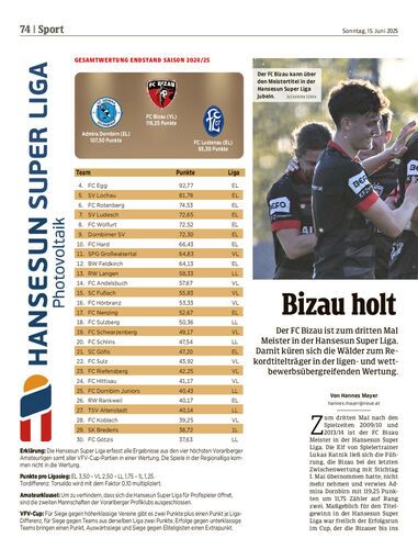 Der FC Bizau ist zum dritten Mal Meister in der Hansesun Super Liga. Damit küren sich die Wälder zum Rekordtitelträger in der ligen- und wettbewerbsübergreifenden Wertung.