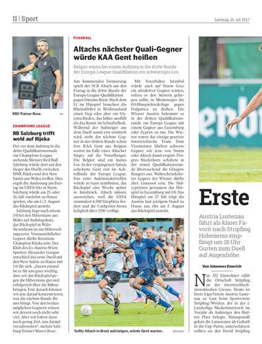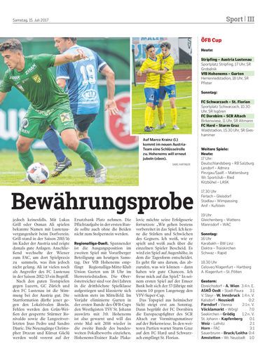 Austria Lustenau fährt als klarer Favorit nach Stripfing. Hohenems empfängt um 18 Uhr Gurten zum Duell auf Augenhöhe.