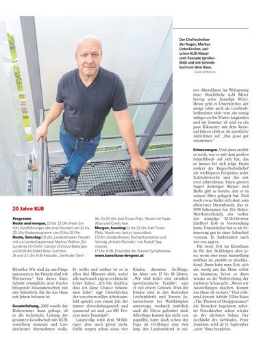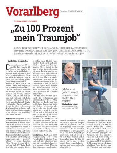 Heute und morgen wird der 20. Geburtstag des Kunsthauses Bregenz gefeiert. Einer, der seit zwei Jahrzehnten dabei ist, ist Markus Unterkircher, heute technischer Leiter der Kuges.