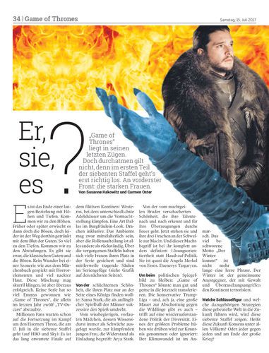 „Game of Thrones“ liegt in seinen letzten Zügen. Doch durchatmen gilt nicht, denn im ersten Teil der siebenten Staffel geht’s erst richtig los. An vorderster Front: die starken Frauen. Von Susanne Rakowitz und Carmen Oster