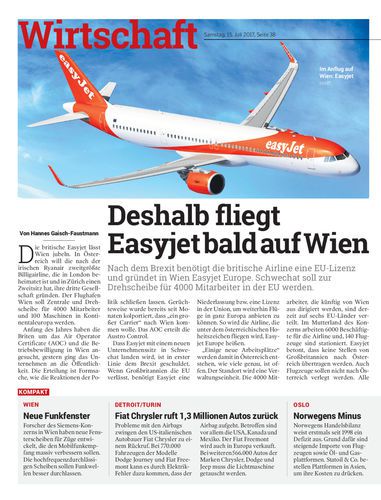 Nach dem Brexit benötigt die britische Airline eine EU-Lizenz und gründet in Wien Easyjet Europe. Schwechat soll zur Drehscheibe für 4000 Mitarbeiter in der EU werden.