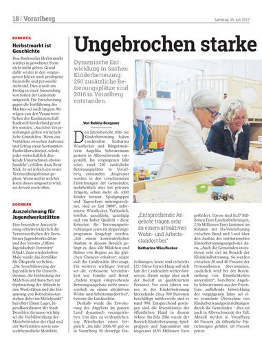 Dynamische Entwicklung in Sachen Kinderbetreuung: 250 zusätzliche Betreuungsplätze sind 2016 in Vorarlberg entstanden.