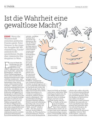ESSAY. Wenn die Wissenschaft zwischen politische Fronten gerät. Peter Strasser in der jüngsten Ausgabe der Wochenzeitung „Furche“ anlässlich der umstrittenen Studie über islamische Kindergärten in Wien.