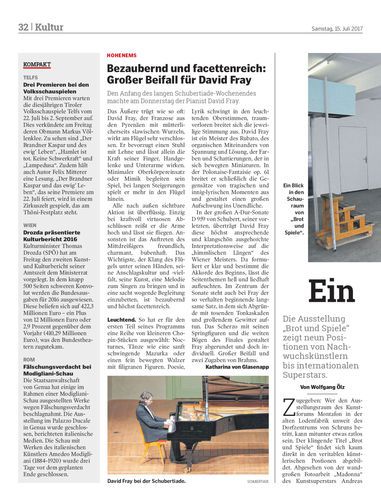 Den Anfang des langen Schubertiade-Wochenendes machte am Donnerstag der Pianist David Fray.