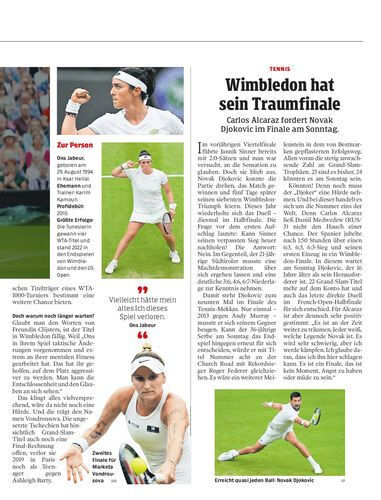 Die Tunesierin Ons Jabeur trägt im heutigen Damenfinale in Wimbledon die Hoffnungen eines ganzen Kontinents. Von Alexander Tagger