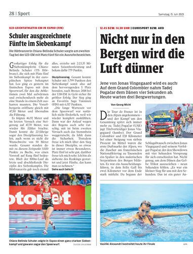 Die Hörbranzerin Chiara-Belinda Schuler sorgte am zweiten Tag bei der U23-EM mit Platz fünf für ein Ausrufechezeichen.