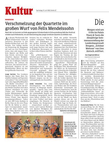 Nach der vor kurzem zu Ende gegangenen Schubertiade in Schwarzenberg lädt das Festival wieder nach Hohenems, wo am Donnerstag das junge Leonkoro Quartet zu erleben war.