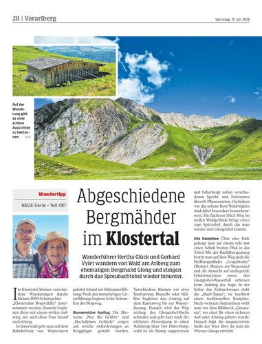Wanderführer Hertha Glück und Gerhard Vylet wandern von Wald am Arlberg zum ehemaligen Bergmahd Glong und steigen durch das Spreubachtobel wieder hinunter.