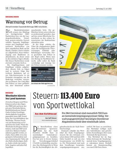 Pro Wettterminal sind monatlich 700 Euro an Gemeindevergnügungssteuer fällig. Verwaltungsgerichtshof bestätigte Dornbirner Abgabenbescheid über eineinhalb Jahre.