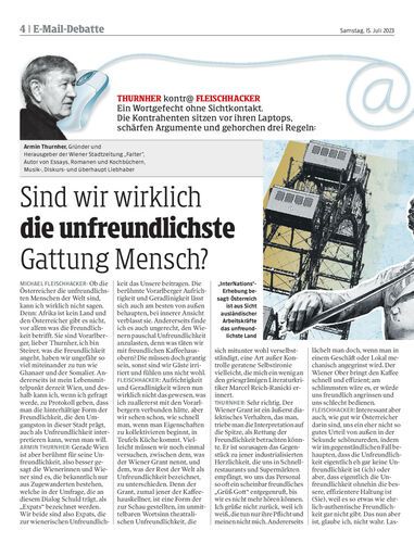 THURNHER kontr@ FLEISCHHACKER Ein Wortgefecht ohne Sichtkontakt. Die Kontrahenten sitzen vor ihren Laptops, schärfen Argumente und gehorchen drei Regeln: