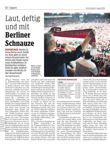 reportage. Berlin is eene Reise wert, heißt es. Nun gibt es noch einen Grund mehr. Im Osten der Stadt kann man Fußballfans in Reinkultur erleben. Und: Es gibt endlich wieder ein Derby in der Hauptstadt. Von Ingo Hasewend