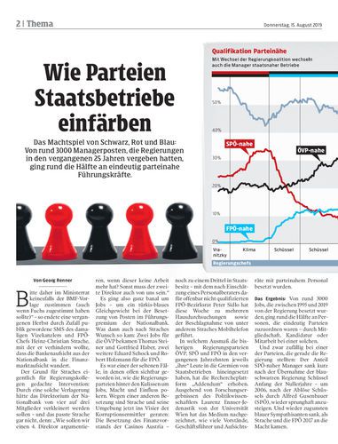 Das Machtspiel von Schwarz, Rot und Blau: Von rund 3000 Managerposten, die Regierungen in den vergangenen 25 Jahren vergeben hatten, ging rund die Hälfte an eindeutig parteinahe Führungskräfte.