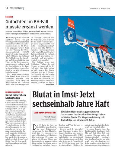Tödlicher Messerstich gegen jungen Lustenauer: Innsbrucker Berufungsrichter erhöhten Strafe für Körperverletzung mit Todesfolge um eineinhalb Jahre.