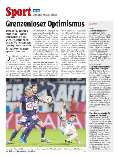 Trotz der 1:2-Heimniederlage im Hinspiel glaubt man bei der Wiener Austria noch an das Weiterkommen in der Qualifikation zur Europa League gegen Apollon Limassol.